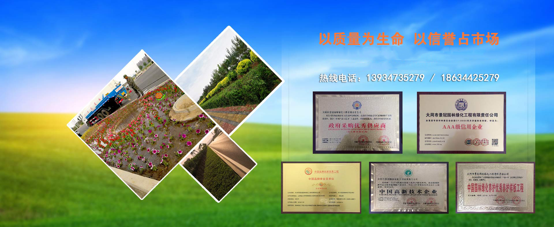 大同市景冠園林綠化工程有限責任公司是一家根植于設計、施工、植保養(yǎng)護、苗木花卉生產于一體的園林景觀企業(yè)。公司“以質量為生命”、“以信譽求發(fā)展”這是公司一貫的經營宗旨。并以創(chuàng)新,誠信,綠色,共享的發(fā)展理念,創(chuàng)造良好的企業(yè)環(huán)境。堅持愛綠,護綠,保綠的方針為城市增添一份綠色,用綠色擔當生態(tài)建設使命是我們共同追求的價值和企業(yè)目標。以全新的管理模式,完善的技術,周到的服務,卓越的品質為生存根本。幾年來我們致力于園林景觀植物領域的研究,在城市綜合體景觀,校園園林景觀,道路景觀,生態(tài)農業(yè)景觀,美麗鄉(xiāng)村景觀,濕地景觀等多個領域參與規(guī)劃設計施工。不斷加大科技投入力度,加強人才的儲備,網絡技術的培訓,提升自主創(chuàng)新能力,不斷完善企業(yè)文化,用超前的技術制定出一套完整的園林植保技術管理方案。我們堅持以擔當為使命,用戶至上,服務至上,秉持初衷,不忘初心,實實在在,心無旁騖做好植保養(yǎng)護主業(yè),打造屬于自己的企業(yè)品牌,好好服務客戶,打動客戶。